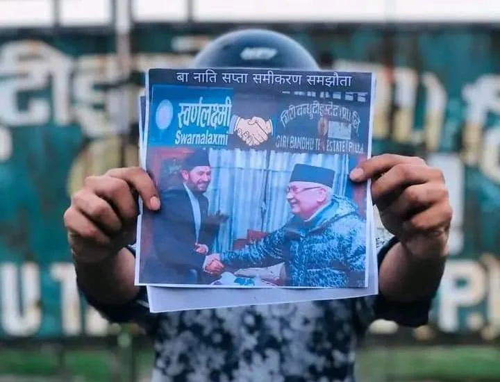 ओली र लामिछानेबिरुद्ध गिरीबन्धु गेटमा प्रदर्शन